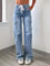 Leisure Straight-leg Jeans With Laces And Multiple Pockets