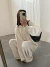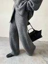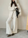 Loose Thickened Knit Hooded Zipper Cardigan Wide-Leg Pants Two-Piece Set
