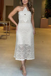 Slip into effortless elegance with this show-stopping knitted dress that's equal parts cozy and daring. The oversized floral knit pattern adds whimsical charm, while the halter neckline and daringly open back create serious statement-making moments. Fitted through the body for a flattering silhouette that hugs in all the right places, this piece transitions seamlessly from brunch to night out. Perfect for anyone ready to turn heads with a little playful flair.