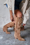 These suede knee-high boots feature a sophisticated pointed toe and a sturdy chunky heel, blending elegance with stability. Crafted for both style and comfort, they provide confident support for extended wear while elevating any outfit. Ideal for adding a refined edge to your wardrobe, their timeless design suits diverse occasions, from casual outings to more polished looks.