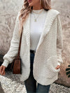 White Wavy Double-Faced Fleece Hooded Cardigan