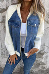 Zippered denim paneled sweatshirt jacket